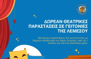 Η Επιτροπή Περιφερειακής Επικοινωνίας και Ανάπτυξης του Δήμου Λεμεσού, συνεχίζει και φέτος τον επιτυχημένο θεσμό διοργανώνοντας «Θέατρο στη Γειτονιά», από την...