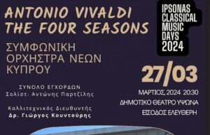 Ο Δήμος Ύψωνα και το Δημοτικό Θέατρο Ύψωνα στα πλαίσια της πολιτιστικής δράσης "Μέρες Κλασικής Μουσικής Ύψωνα 2024" φιλοξενούν τo κλιμάκιο εγχόρδων της Συμφωνικής Ορχήστρας Νέων Κύπρου με σολίστ τον Αντώνη Παρτζίλη.