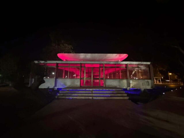 Το περίπτερο φωτίστηκε για πρώτη φορά μετά από δεκαετίες, δημιουργώντας ένα εντυπωσιακό σκηνικό που υπογραμμίζει την αρχιτεκτονική του αξία και δίνει μια πρώτη γεύση από τη μελλοντική του χρήση.