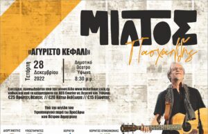 Ο Σύνδεσμος Αποδήμων Λόφου σας προσκαλεί στη νμουσική παράσταση "Αγύριστο Κεφάλι" με τον δημοφιλή Ελλαδίτη καλλιτέχνη Μίλτο Πασχαλίδη την Τετάρτη 28 Δεκεμβρίου 2022 και...