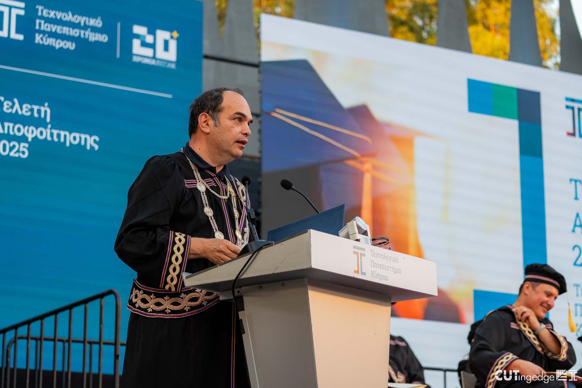 Σε ομιλία του στην τελετή, ο Πρύτανης του ΤΕΠΑΚ, Καθηγητής Παναγιώτης Ζαφείρης, ανέφερε, μεταξύ άλλων, πως η διεθνοποίηση είναι στρατηγική προτεραιότητα για το ΤΕΠΑΚ, κάνοντας ιδιαίτερη μνεία στη συμμετοχή του Πανεπιστημίου στην ευρωπαϊκή συμμαχία για τη δημιουργία του Ευρωπαϊκού Τεχνολογικού Πανεπιστημίου (EUt+), μαζί με άλλα οκτώ κορυφαία τεχνολογικά πανεπιστήμια.