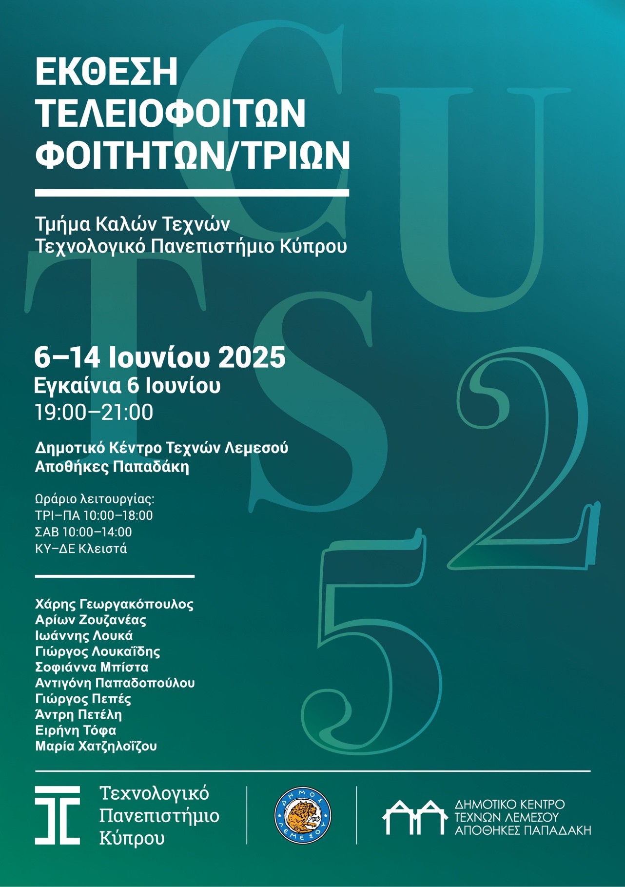 Για δέκατη πέμπτη συνεχή χρονιά, οι τελειόφοιτοι του Τμήματος Πολυμέσων και Γραφικών Τεχνών του Τεχνολογικού Πανεπιστημίου Κύπρου παρουσιάζουν την ετήσια έκθεση CUTOUT25.