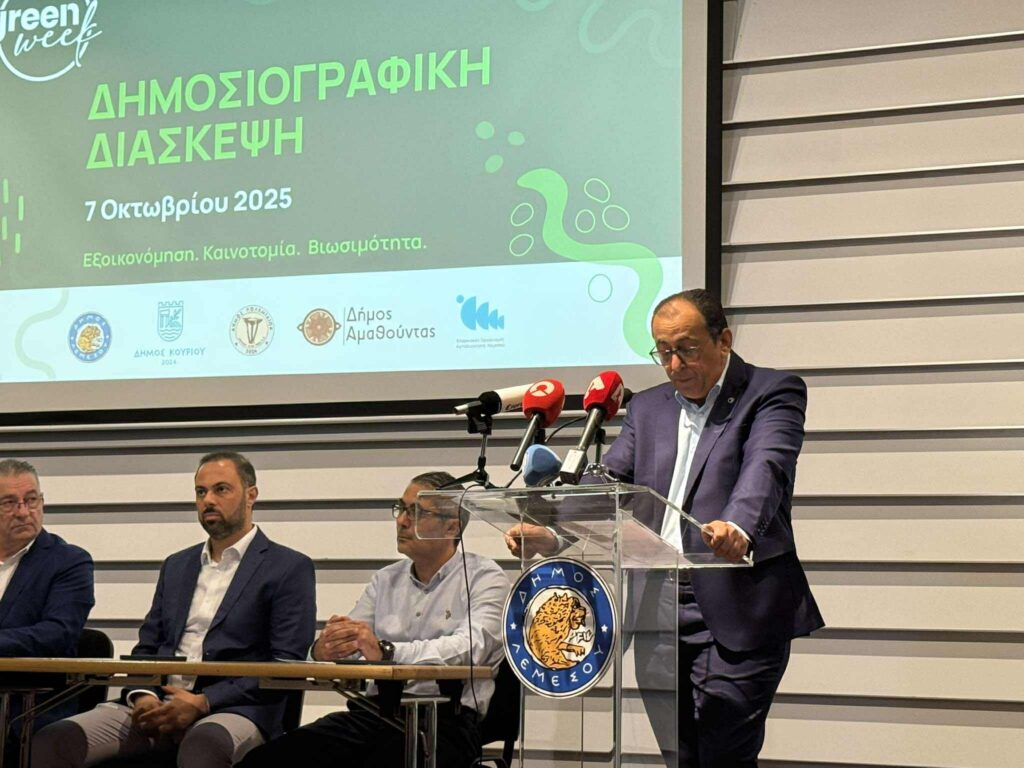 Πραγματοποιήθηκε την Τρίτη (07/10) στο Πολιτιστικό Κέντρο «Πάνος Σολομωνίδης» στη Λεμεσό η Δημοσιογραφική Διάσκεψη Δήμων και ΕΟΑ Λεμεσού και Ομίλου Green Energy, ενόψει της Πράσινης Βδομάδας.
