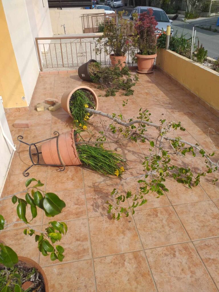 Ένα από τα πιο σοβαρά περιστατικά σημειώθηκε στη Λεωφόρο Μακαρίου, όπου δέντρο ξεριζώθηκε από τους δυνατούς ανέμους και έπεσε πάνω σε αυτοκίνητο, προκαλώντας εκτεταμένες ζημιές. Το ίδιο δέντρο προκάλεσε φθορές και στο πίσω μέρος δεύτερου οχήματος, χωρίς ευτυχώς να υπάρξουν τραυματισμοί.