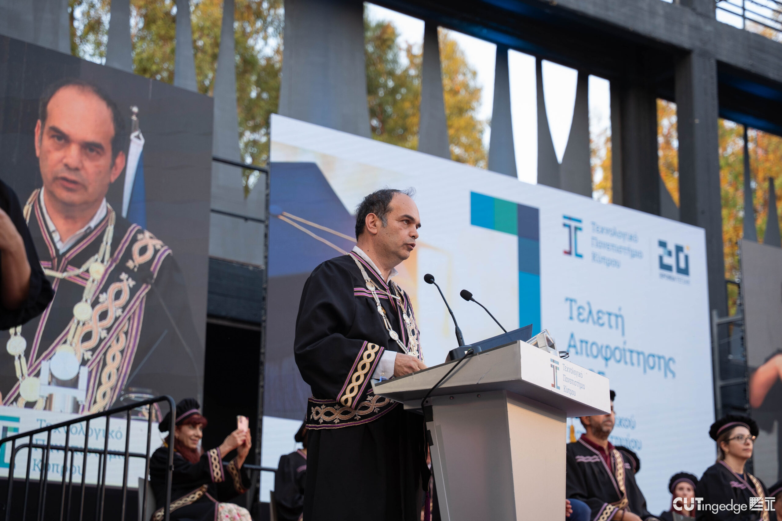 Σε ομιλία του στην τελετή, ο Πρύτανης του ΤΕΠΑΚ, Καθηγητής Παναγιώτης Ζαφείρης, αφού πρώτα συνεχάρη τους απόφοιτους και απόφοιτες, ανέφερε, μεταξύ άλλων, πως «η διεθνής ανώτατη εκπαίδευση βρίσκεται σε μια εποχή μεγάλων αλλαγών και μετασχηματισμών.»