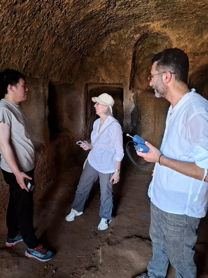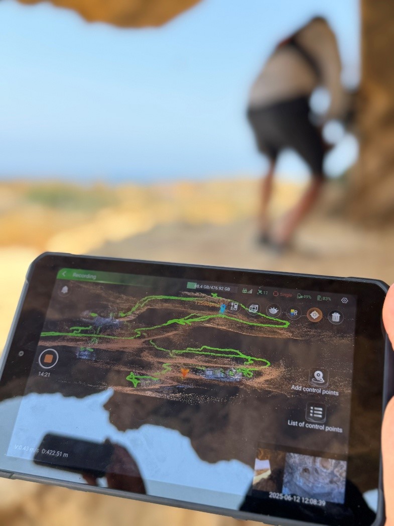 Κατά τη διάρκεια του Σχολείου, πραγματοποιήθηκαν επιτόπιες μετρήσεις κατόπιν σχετικής άδειας από το Τμήμα Αρχαιοτήτων, το οποίο ευχαριστούμε θερμά για την πολύτιμη συνεργασία και τη διαχρονική του υποστήριξη. Για την υποστήριξη της τρισδιάστατης τεκμηρίωσης και των μη καταστροφικών ελέγχων στους τάφους, παραχωρήθηκε εξοπλισμός από την ερευνητική υποδομή του έργου CONNECTING του Τμήματος Πολιτικών Μηχανικών και Γεωπληροφορικής (ΠΟΜΗΓΕ) του ΤΕΠΑΚ, συμπεριλαμβανομένου του φορητού σαρωτή λέιζερ SLAM CHCNAV RS10, καθώς και εργαλεία όπως μετρητή υγρασίας, σφύρα Schmidt και υπερηχητικό ανιχνευτή.
