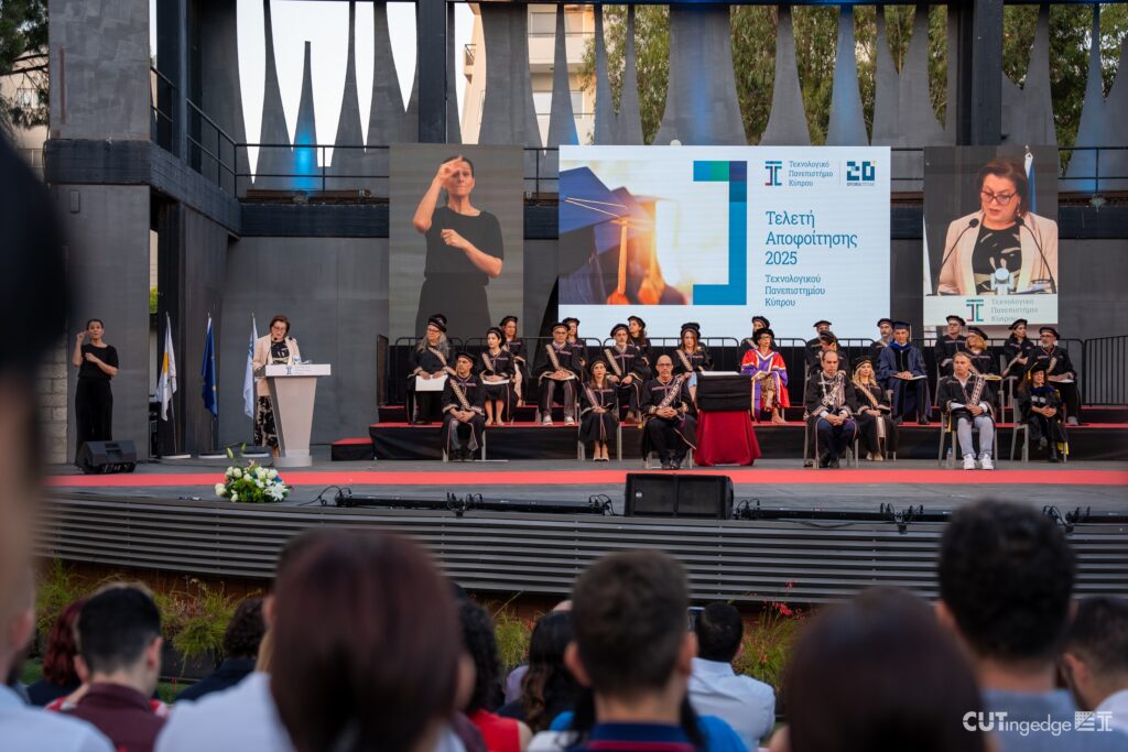Για πρώτη φορά φέτος, οι τελετές αποφοίτησης περιλαμβάνουν και διερμηνεία στη νοηματική γλώσσα, επιβεβαιώνοντας έμπρακτα τη δέσμευση του ΤΕΠΑΚ στις αρχές της ισότητας και της συμπερίληψης.