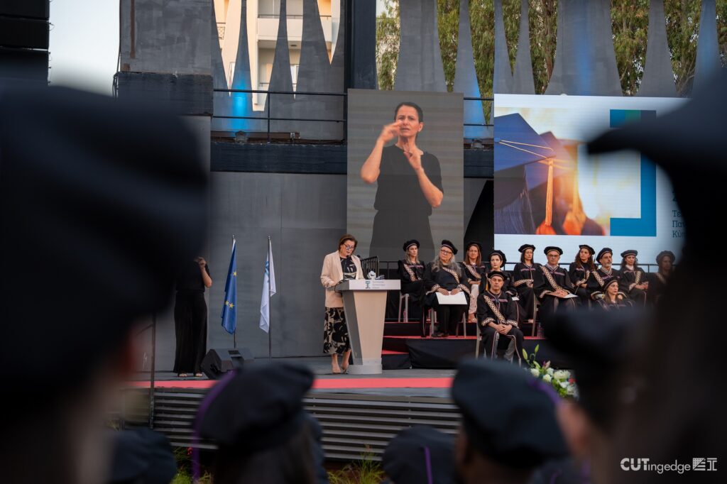Η Δρ Μιχαηλίδου μιλούσε κατά τη χθεσινοβραδινή τελετή αποφοίτησης των προπτυχιακών και μεταπτυχιακών φοιτητών και φοιτητριών της Σχολής Επικοινωνίας και Μέσων Ενημέρωσης, της Σχολής Καλών και Εφαρμοσμένων Τεχνών και της Σχολής Επιστημών Υγείας του Τεχνολογικού Πανεπιστημίου Κύπρου.