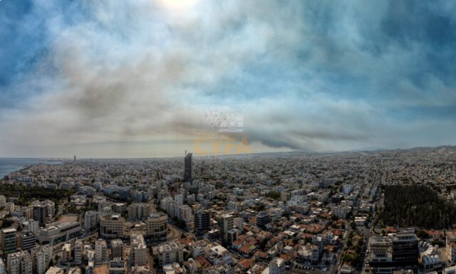 Η τεράστια πυρκαγιά κοντά στο χωριό Μάλια είναι ορατή από τη Λεμεσό, με στάχτες να πέφτουν στην πόλη με τον φακό του Ρώμου Κοτσώνη: