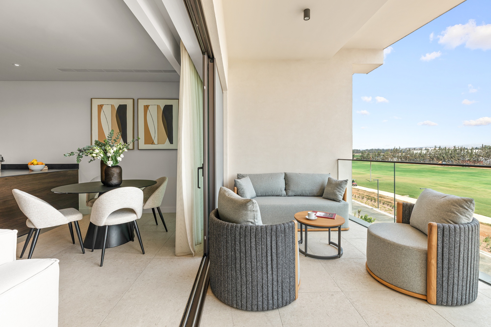 Centrally located within the resort, the Robin Apartments are the only mid-rise residential offering in phase one of Limassol Greens, with sweeping views of the championship golf course, the Salt Lake, the surrounding forest, and the Mediterranean Sea. The development comprises two refined buildings, each featuring 26 apartments across four storeys. Generous terraces, seamless indoor-outdoor living, and premium materials define these elegant residences. Underground parking with private storage, landscaped communal areas, private gardens for ground-floor units, and shaped pools enhance the overall living experience.