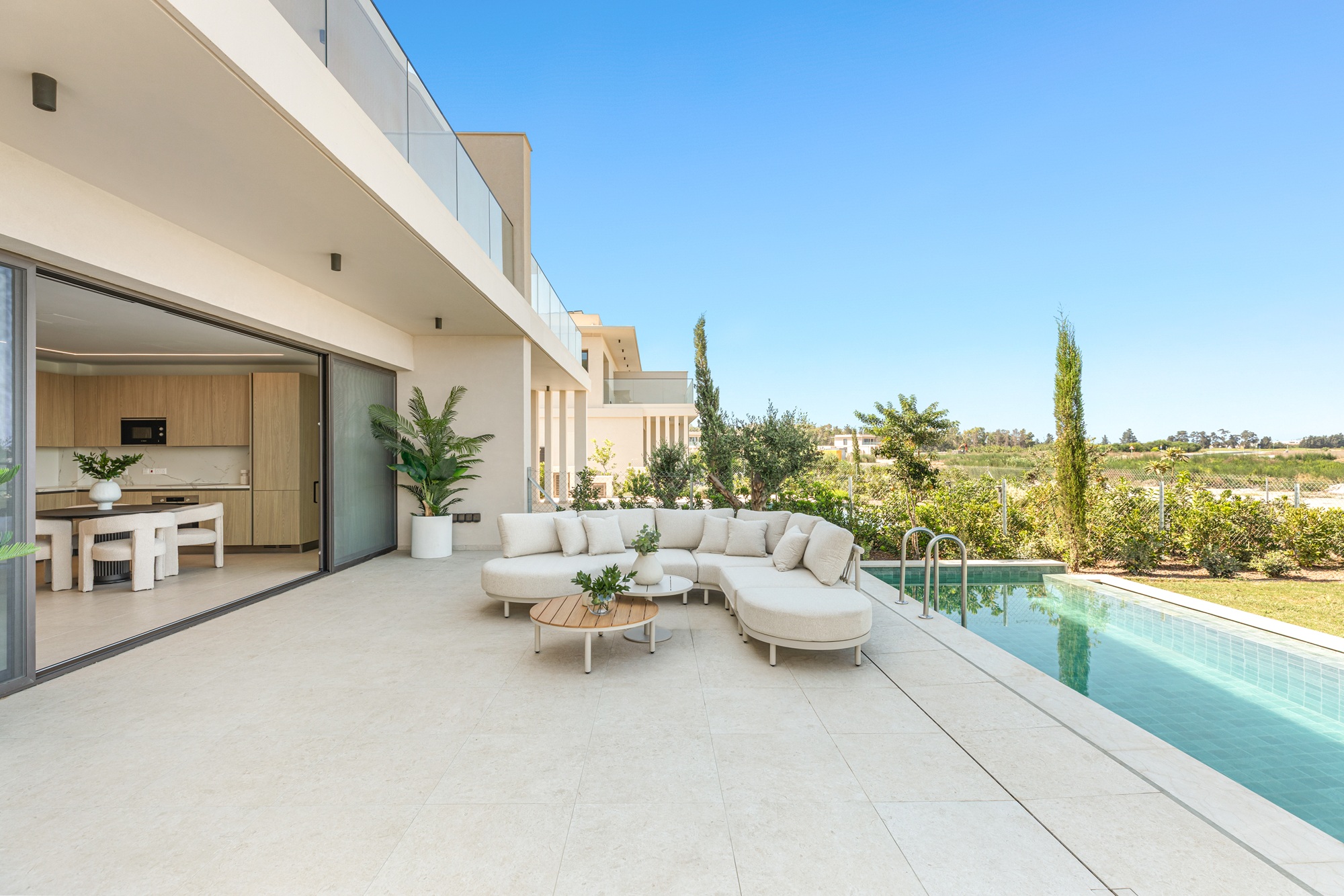 Την ίδια στιγμή, η παράδοση των επαύλεων σηματοδοτεί ένα ακόμη σημαντικό βήμα προόδου για την ανάπτυξη. Με εύρος από δύο έως πέντε υπνοδωμάτια, αυτές οι επαύλεις ανταποκρίνονται σε διαφορετικές ανάγκες διαβίωσης, από ζευγάρια, νέες και πολυμελείς οικογένειες, αλλά και σε διεθνείς αγοραστές. Κάθε έπαυλη έχει σχεδιαστεί με έμφαση στη φωτεινότητα και την ευελιξία, διαθέτοντας ανοιχτές διαρρυθμίσεις, ψηλοτάβανους χώρους, σκιερές βεράντες, ιδιωτικές πισίνες και μεσογειακούς κήπους. Διακριτικές είσοδοι ενισχύουν την ιδιωτικότητα και αποτυπώνουν τη φιλοσοφία χαμηλής πυκνότητας που χαρακτηρίζει ολόκληρη την ανάπτυξη.