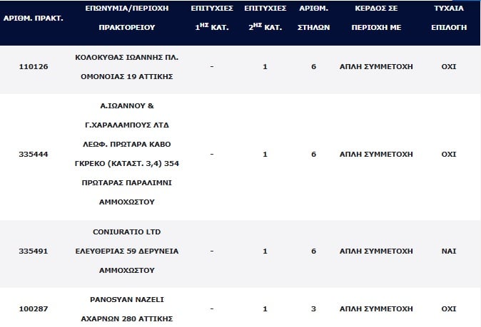 Επίσης, τέσσερα τυχερά δελτίά βρέθηκαν στη 2η κατηγορία, τα οποία κερδίζουν το ποσό των €100.000,00 για κάθε επιτυχία.